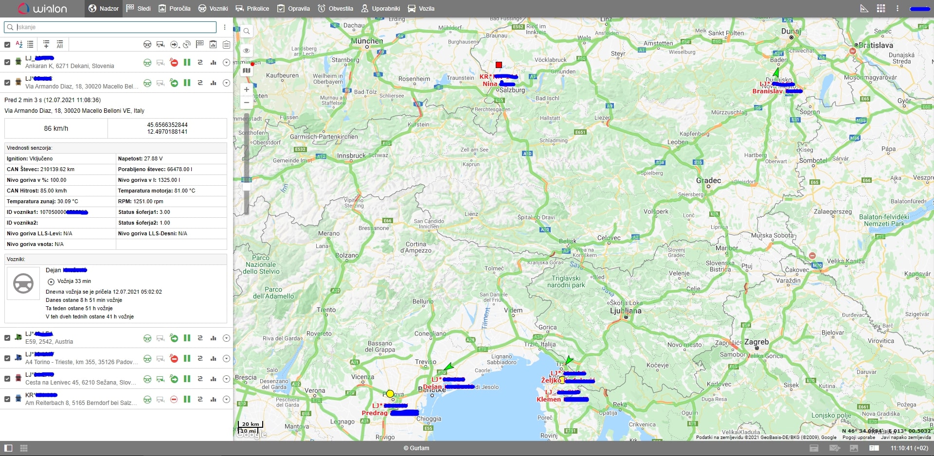 - Izbira različnih zemljevidov – Google maps + Google Street view, Gurtam maps.